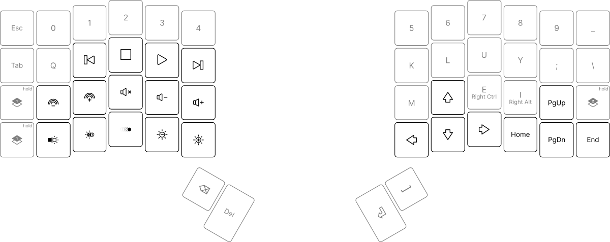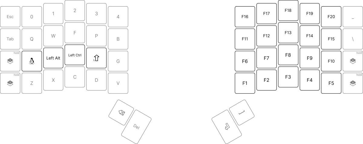 To stay consistent with this rule I convinced myself that for a ‘clean’ setup, all configuration must be done on the keyboard side. The apps I use shouldn’t adhere to the keyboard layout. In other words, the layout must not rely on apps to be installed or configured a certain way. When I plug my keyboard into a computer, I expect it to work instantly without requiring additional changes in the settings.
